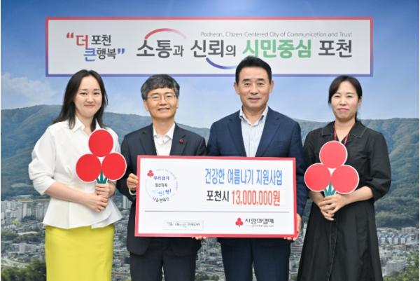 [한국뉴스타임=편집국] 포천시는 13일 경기사회복지공동모금회 북부사업본부와 ‘경기북부사랑의열매 여름나기 지원사업’ 배분금 전달식을 개최했다.