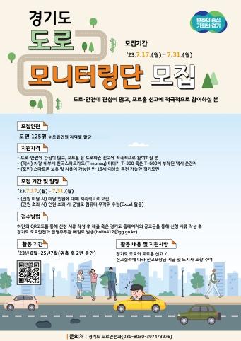 [한국뉴스타임=편집국] 경기도가 오는 31일까지 ‘경기도 도로 모니터링단’에 참여할 도민 125명을 모집한다.