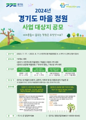 [한국뉴스타임=편집국] 경기도가 ‘2024년 경기도 마을 정원 조성사업’ 참여 대상지를 모집한다.