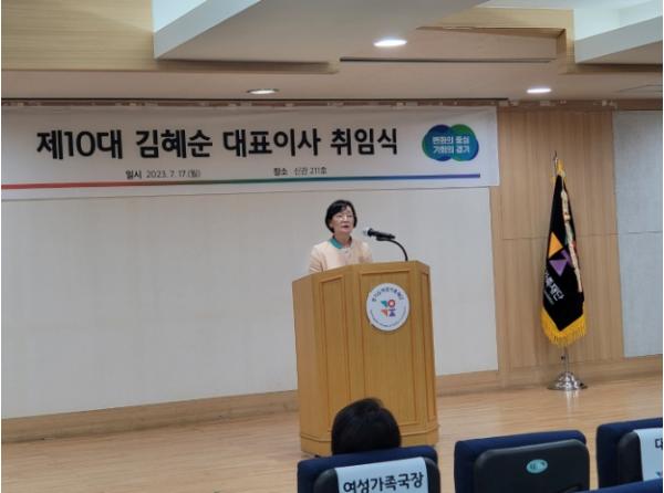 김혜순 대표이사는 “공직사회의 경험을 바탕으로 경기도의 여성, 가족 분야에서 정책개발과 다양한 사업을 이끌어가면서 안정적으로 재단을 운영해 나가겠다”라고 말했다.