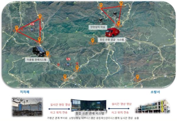 드론 관제는 실시간 현장 영상이 군청과 소방서에 송출되는 물놀이 현장 대응 시스템으로 광범위하고 자연지형의 단점과 인력확보 제한사항 등을 극복할 수 있는 장점이 있다.