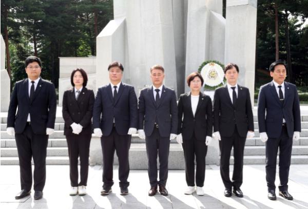 [한국뉴스타임=편집국] 경기도의회 국민의힘 김정호(광명1) 대표의원을 비롯한 신임 대표단이 19일 수원특례시 현충탑을 찾아 참배했다.