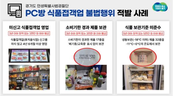 경기도 민생특별사법경찰단은 지난 6월 19일부터 6월 30일까지 도내 PC방 내 식품접객업소 120곳을 단속한 결과 20곳(23건)을 적발했다고 20일 밝혔다.