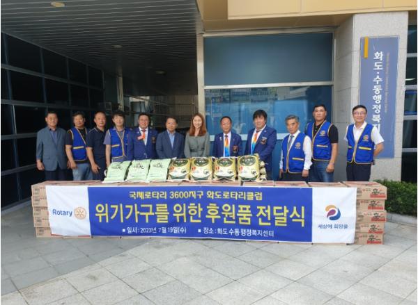 이효석 화도수동행정복지센터장은 “어려운 이웃들을 위해 물품을 지원해주신 화도로타리클럽에 진심으로 감사드리며, 최근 급등하는 소비 물가에 힘들어하는 주민들에게 이번 후원 물품이 조금이나마 보탬이 되길 희망한다”라고 전했다.