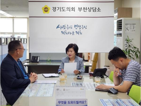 [한국뉴스타임=편집국] 경기도의회 건설교통위원회 김동희 의원(더민주, 부천6)은 20일 부천상담소에서 ‘道 도시철도 운임 범위 조정 추진계획안’에 관한 내용을 경기도청 조치형 철도운영과장과 담당자에게 보고받는 자리를 가졌다.