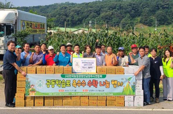[한국뉴스타임=편집국] 한국후계농업경영인 남양주시연합회는 21일 회원들이 공동으로 운영하는 진건읍 배양리 소재 학습포에서 수확한 옥수수 200박스(1,000kg)를 남양주시복지재단에 전달했다.