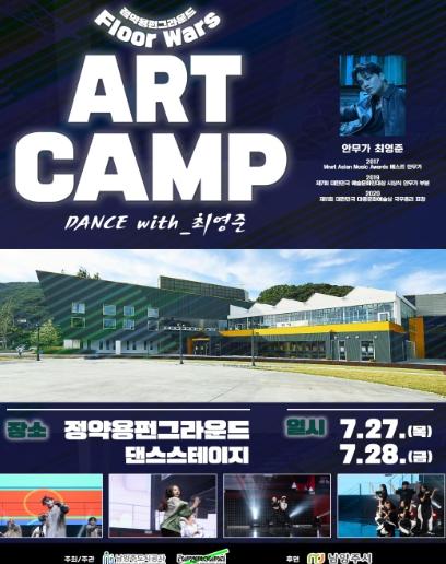 [한국뉴스타임=편집국] 남양주도시공사는 정약용 펀그라운드(남양주유스호스텔)에서 오는 7월 28일 ~ 29일 양일간‘FLOOR WARS’Art CAMP(Dance with 최영준)를 운영한다고 밝혔다.
