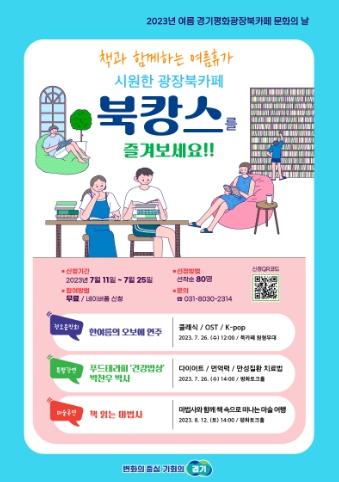 [한국뉴스타임=편집국] 폭우와 무더위로 힘들고 지친 여름, 경기도청 북부청사 경기평화광장 북카페에서 슬기로운 여름 보내기 ‘책(book)과 함께하는 휴가(vacance), 북캉스’를 진행한다.