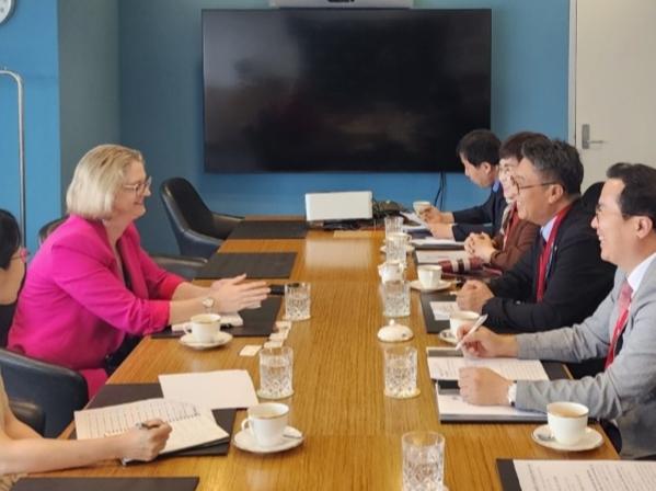 [한국뉴스타임=편집국] 경기도의회 이석균(남양주1·국민의힘) 호주 퀸즐랜드주 친선의원연맹 회장을 비롯한 소속 의원들은 21일(금) 주한호주대사관을 예방하고, 알렉산드라 씨들(Alexandra Siddall) 공사와의 면담을 통해 경기도의회와 호주 퀸즐랜드주의회 간 교류 재개에 대한 의견을 교환했다.