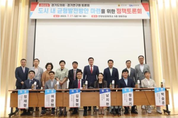 [한국뉴스타임=편집국] 경기도의회 기획재정위원회 김철현 부위원장이(국민의힘, 안양2) 좌장을 맡은 '도시 내 균형발전방안 마련 '토론회가 21일, 안양시 상공회의소 5층 대회의실에서 개최됐다. 본 토론회는 도시 내 신·구도심의 상생발전 방안을 찾고자 경기도의회와 경기연구원이 공동으로 주관했다.