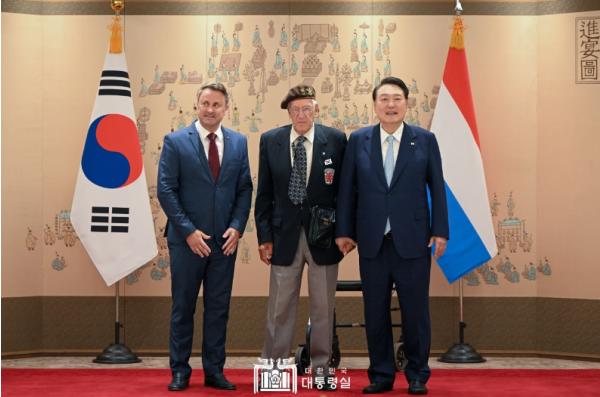 한편, 대통령은 룩셈부르크 총리 면담에 앞서 베텔 총리와 함께 방한한 레옹 모아?(L?on Moyen) 룩셈부르크 생존 한국전 참전용사와 환담했다.
