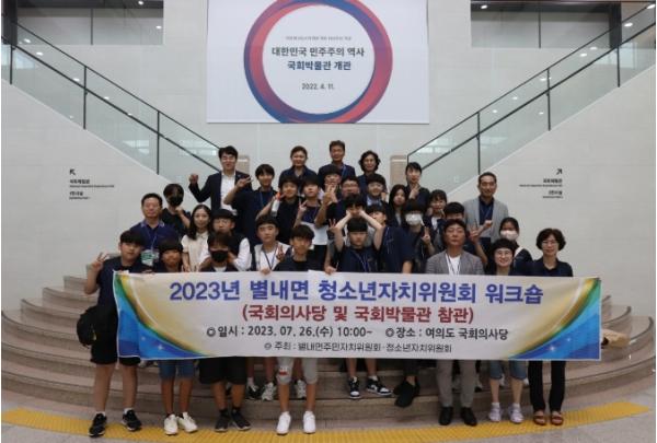 [한국뉴스타임=편집국] 남양주시 별내면 주민자치위원회는 2023년 주민자치 활성화 사업의 일환으로 26일 여의도 국회의사당에서 ‘제4기 별내면 청소년자치위원회 하계 워크숍’을 개최했다.