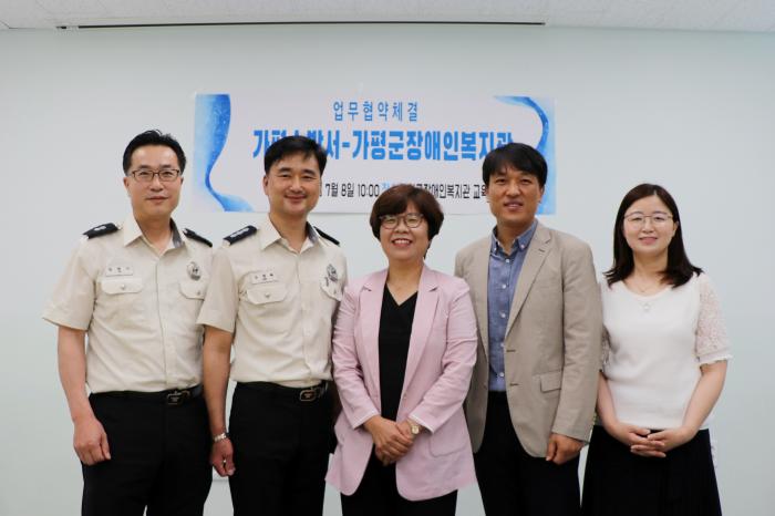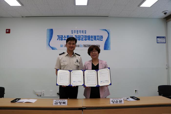 가평소방서(서장 김전수)는 가평군장애인복지관(관장 양순분)과 장애인에 대한 권익 보호와 복지증진을 위한 상호 업무 협약식을 8일 체결했다.