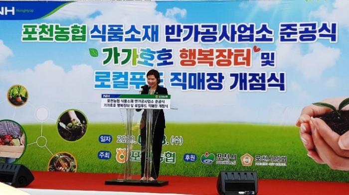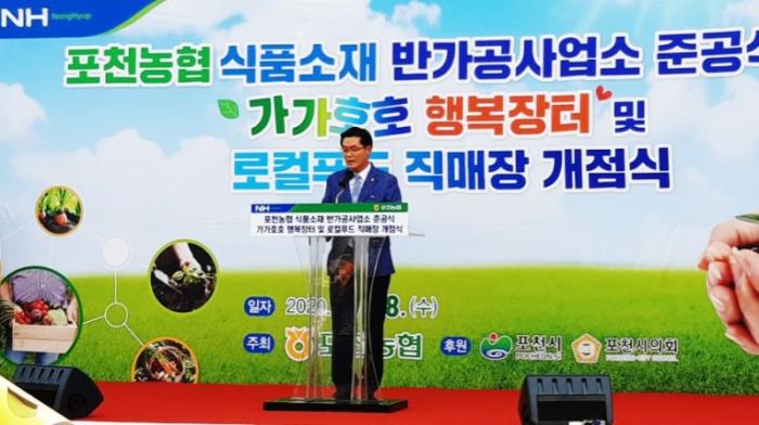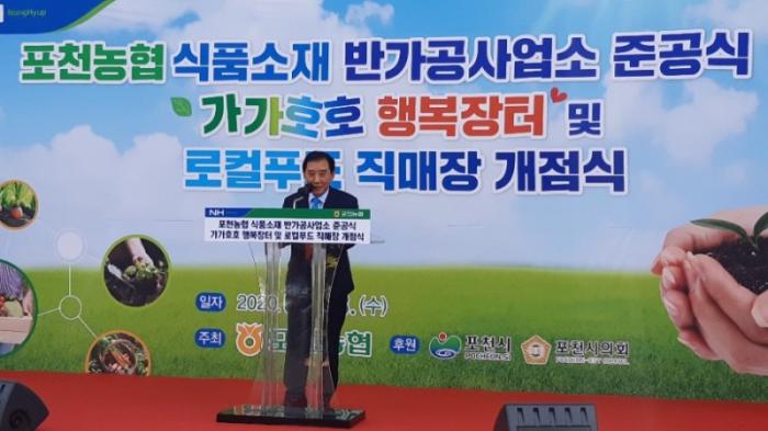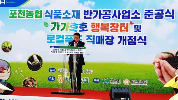 [한국뉴스타임=포천] 8일 오전 포천농협 (조합장 김광열) 은 식품소재 반가공사업소 준공식 및 '가가호호 행복장터' 및 로컬푸드 직매장 개점식을 가졌다.