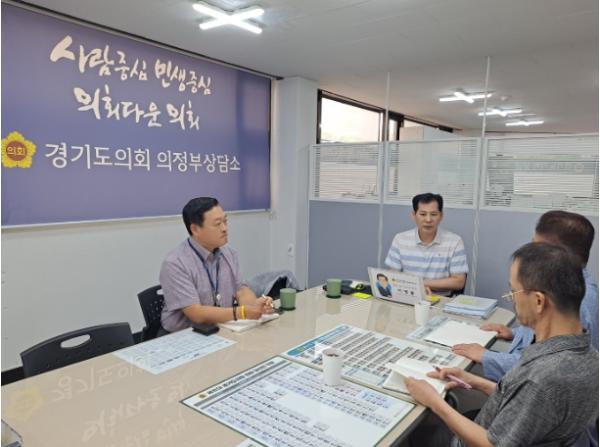 [한국뉴스타임=편집국] 경기도의회 문화체육관광위원회 이영봉 위원장(더불어민주당, 의정부2)은 지난 27일 도의회 의정부상담소에서 (사)한국연극협회 한원식 경기도지회장 등 관계자들이 참석한 가운데 ‘2024년 대한민국 연극제‘ 용인시 개최 지원에 관한 검토 보고회를 가졌다.