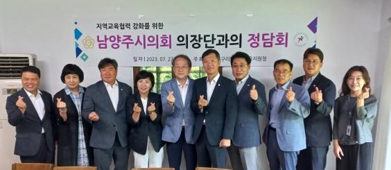 [한국뉴스타임=편집국] 경기도구리남양주교육지원청은 지난 27일 남양주시의회 김현택 의장, 김지훈 운영위원장, 김지훈 자치행정위원장, 김영실 복지환경위원장, 조성대 도시교통위원장과 남양주시 교육현안 공유 및 협력을 위하여 정담회를 개최했다.