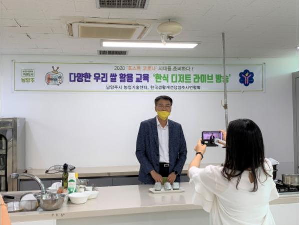 [KNT한국뉴스타임] 남양주시 농업기술센터(소장 구형서)는 8일 센터에서‘포스트 코로나’시대를 대비해 생활개선연합회 회장 및 임원 39명을 대상으로 다양한 우리 쌀 활용 교육을 라이브방송으로 실시했다.