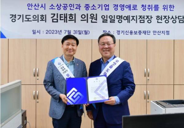 [한국뉴스타임=편집국] 경기도의회 경제노동위원회 김태희 도의원(더불어민주당, 안산2)은 지난 31일 경기신용보증재단(이하 ‘경기신보’) 안산지점 일일명예지점장으로 나서 지역경제 현장에서 중소기업, 소상공인이 당면하고 있는 고충을 직접 청취했다.