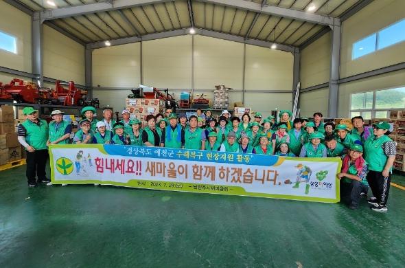 [한국뉴스타임=편집국] 남양주시새마을회는 지난 29일 최근 집중호우로 인해 큰 피해를 입은 경북 예천군 효자면 지역의 수해 피해 가구를 방문해 수해복구 봉사활동을 실시했다.