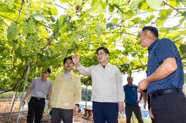 이번 방문은 최근 농업 현장에서 온열질환자가 발생이 늘어난 데 따른 것으로 오 부지사는 먼저 안산시 단원구 대부북동에 위치한 그린영농조합(포도 재배농가)을 찾아 현장 작업자들에 대한 폭염 대책 등을 살펴봤다.