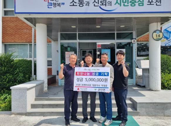이한우 관인면장은 “지역사회에 사랑을 실천하고 어려운 이웃을 위해 나눔을 실천하는 박영훈 대표이사님께 감사드린다. 기탁하신 성금은 관내 위기가정, 복지사각지대 발굴 대상자 등 소외되고 어려움을 겪는 분들에게 잘 사용될 수 있도록 하겠다”고 전했다.