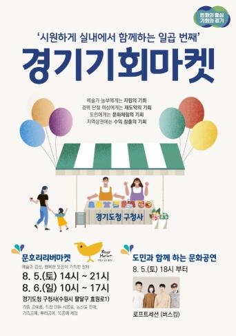 [한국뉴스타임=편집국] 매월 첫째 주말 문호리리버마켓과 함께 하는 경기기회마켓이 8월 5일부터 6일까지 2일간 수원시 팔달구에 위치한 경기도청 옛청사에서 열린다.
