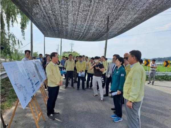 정선우 경기도 건설국장은 지난 3일 이천시 청미천 현장점검에서 동행한 한화진 환경부장관에게 이 같은 건의문을 제출했다. 이번 현장점검에는 송석준 국회의원, 김경희 이천시장 등도 함께 했다.