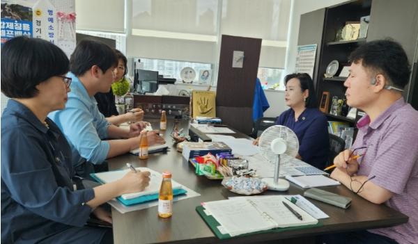 이날 회의는 정윤경 의원, 경기도청 한수경 아동돌봄팀장 및 담당 주무관이 참석해 현재 진행 중인 지역아동센터 시간제 보육교사 추가 수요조사 현황과 통학 차량 지도로 인한 지역아동센터 돌봄 공백 발생 및 지역아동센터를 활용한 맞벌이 부부의 육아 부담 감소 방안에 대한 의견을 나누었다.