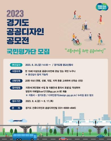 고용수 경기도 건축디자인과장은 “국민이 만족하는 우수한 공공디자인 아이디어의 선정을 위해 국민평가단이 중요한 역할인 만큼 공공디자인에 관심 있는 분들의 많은 참여를 바란다”라고 말했다.