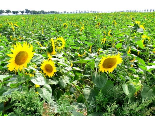 민선7기 역점시책 중 하나인 대부도 농업해양문화 관광단지 조성의 일환으로 조성된 해바라기 꽃밭은 뜨거운 태양을 피해 몸을 숨기는 여름 더위에도 대부도를 노란 물감으로 진하게 물들인 노란꽃 물결로 장관을 이뤄 방문객의 눈길을 사로잡고 있다.