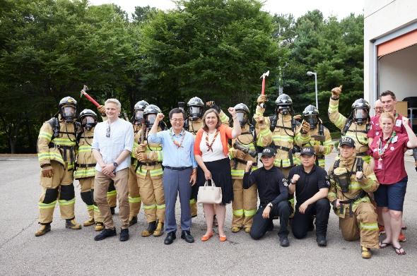김동연 지사는 먼저 용인시 처인구에 위치한 소방학교를 찾아 시설을 점검하며 참가 대원들의 소방 체험활동 현장을 살폈다.
