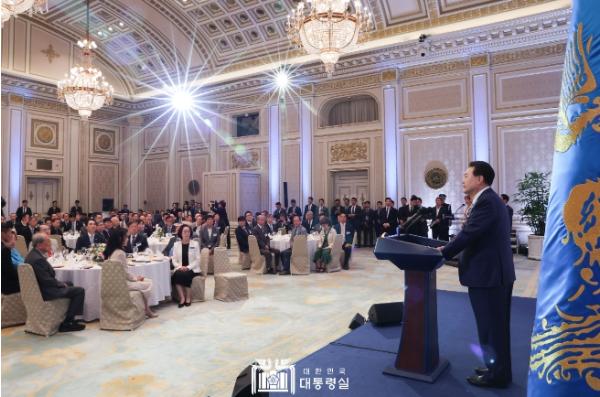다음으로 이종찬 광복회장이 “대통령님께서 국가보훈처를 국가보훈부로 승격해 주신 것에 대해 감사드린다”고 하자 참석자들은 다 함께 박수를 치며 정부의 보훈 의지에 감사를 표했다. 이어 이종찬 광복회장이 ‘대한민국이여 영원하라’라고 건배 제의를 했다.
