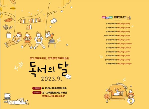[한국뉴스타임=편집국] 경기도교육청이 9월 독서의 달을 맞아 10개 경기교육도서관과 경기평생교육학습관에서 학생과 지역주민 대상 다양한 독서 행사를 운영한다.