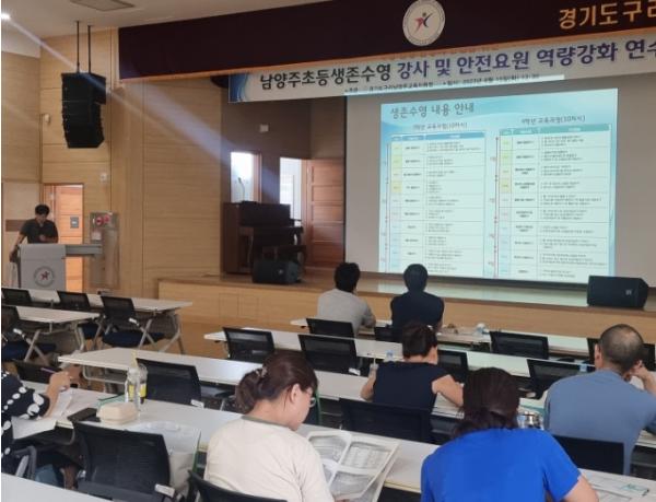 [한국뉴스타임=편집국] 경기도구리남양주교육지원청은 8월 15일(화) 남양주 관내 공공체육문화센터를 지원한 생존수영 강사 및 안전요원을 대상으로 생존수영 역량 강화 연수를 실시했다.