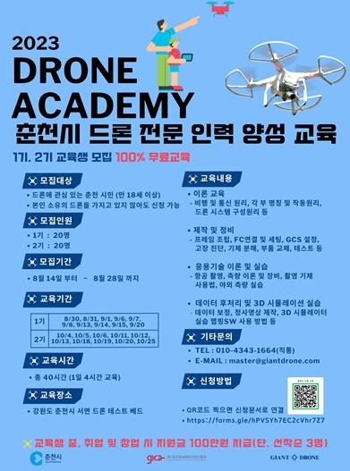 [한국뉴스타임=편집국] 춘천시와 강원정보문화산업진흥원은 오는 28일까지 ‘2023년 드론 전문인력 양성’ 교육생을 모집한다.