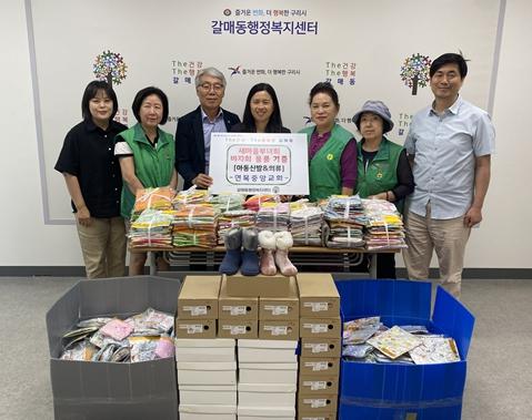 [한국뉴스타임=편집국] 구리시 갈매동 행정복지센터는 지난 16일 면목중앙교회로부터 유아복 및 아동 신발 400점을 기증받았다.