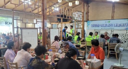 [한국뉴스타임=편집국] 남양주시 수동면 지역사회보장협의체는 18일 삼계탕 전문점〈돌고개 해신탕〉에서 관내 취약계층 어르신 30명을 초청해‘건강한 여름나기 나눔 행사’를 개최했다.