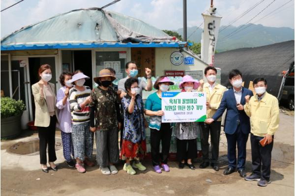 이날 방문에는 농협은행 과천시지부(지부장 김문호)에서도 함께 해 마을 주민을 위해 2리터 생수 4000여 병을 기부했다.