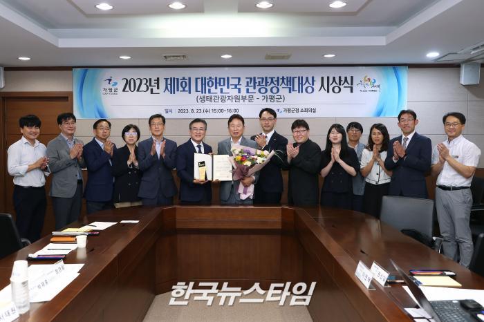 [한국뉴스타임=편집국] 가평군 ‘북한강 천년 뱃길 조성 사업’이 2023년 제1회 대한민국 관광정책대상 생태관광자원부문 대상을 수상한 가운데 23일 오후 시상식이 이었다.