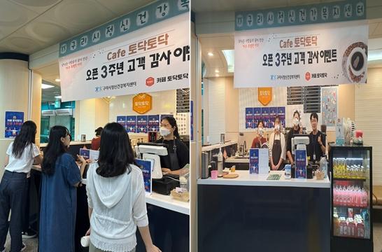 [한국뉴스타임=편집국] 구리시는 구리시정신건강복지센터에서 정신질환자의 직업 재활을 위해 지난 22일 구리시보건소 1층에서 ‘카페 토닥토닥 오픈 3주년 기념행사’를 진행했다고 밝혔다.