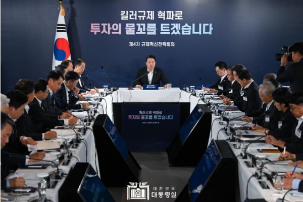 [한국뉴스타임=편집국] 윤석열 대통령은 오늘(8. 24, 목) 오전 구로디지털산업단지 G밸리산업박물관에서 ‘킬러규제 혁파 규제혁신전략회의’를 직접 주재하며 산업단지·환경·고용 분야 킬러규제 혁파 핵심 안건들에 대해 각 부처 장관들의 보고를 듣고, 민간 참석자들과도 심도 있는 토론을 했다.