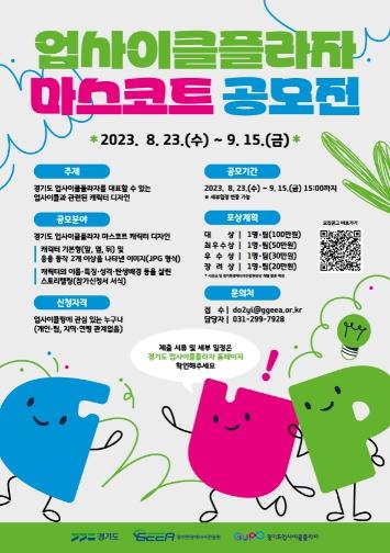공모 분야는 ‘경기도 업사이클플라자 마스코트 캐릭터’로, 공모전에 참여하고자 하는 참가자는 마스코트 캐릭터 기본형(앞/옆/뒤) 및 응용 동작 2개 이상이 포함된 디자인과 마스코트 캐릭터의 이름·특징·성격·탄생 배경 등이 포함된 스토리텔링 자료를 제출해야 한다.