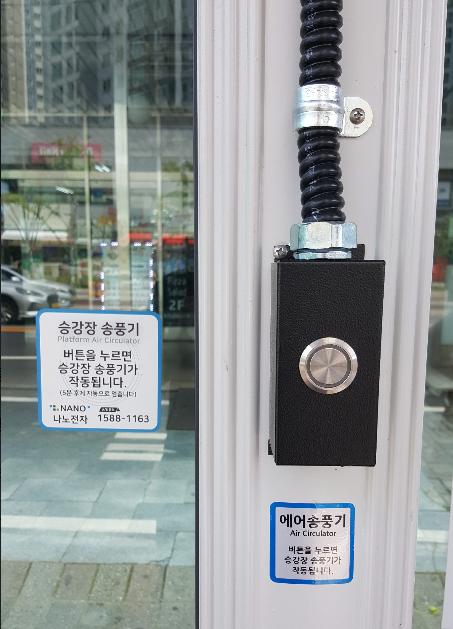 정류소에 설치된 에어송풍기는 이용자가 작동스위치를 누르면 3~5분간 작동 후 자동으로 멈추며, 위에서 아랫방향으로 부는 자연바람이 공기를 순환시켜 체감온도를 약 4℃정도 낮춰준다.