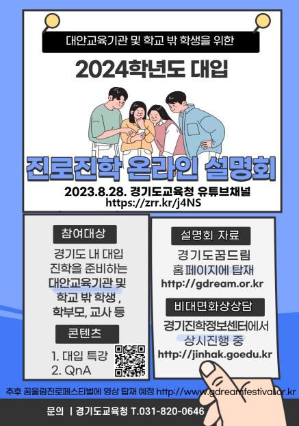 [한국뉴스타임=편집국] 경기도교육청이 대안교육기관, 학교 밖 학생의 2024학년 대입 준비 지원을 위해 온라인 진로 진학 설명회를 개최한다.