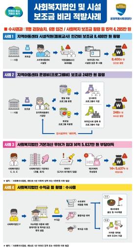 [한국뉴스타임=편집국] 엄격하게 사용이 제한된 사회복지법인·시설의 보조금을 횡령해 자신의 학비로 쓰거나 법인·시설의 건축물을 불법 임대해 수억 원의 부당 이득을 챙긴 법인 대표 등 17명이 경기도 특별사법경찰단 수사망에 덜미를 잡혔다.