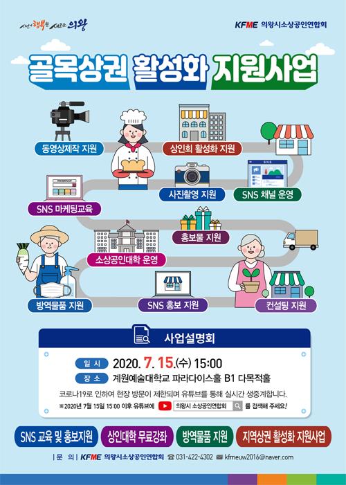 한편, 의왕시 소상공인연합회에서는 오는 15일 15시에 계원예술대학교 파라다이스홀에서 골목상권 활성화 사업설명회를 개최할 예정이며, 참석하지 못하는 분들을 위해 의왕시 소상공인연합회 유튜브로도 실시간 생중계할 계획이다.