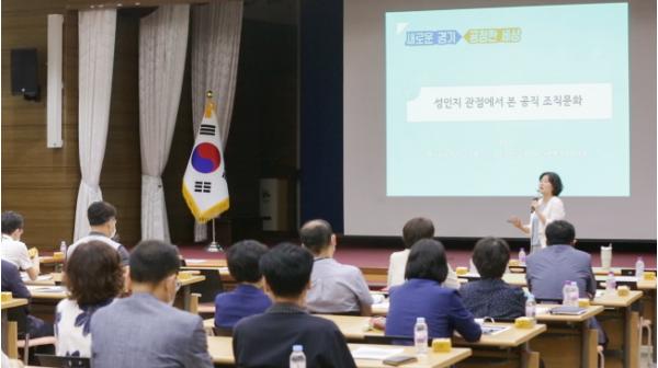 이날 교육은,‘젠더연구소 이제’최기자 부소장이‘성인지관점에서 본 공직 조직문화’라는 주제로 강의하며 지역사회에 성평등 의식과 문화가 정착되기 위해서는 지역의 정책을 펼치고 있는 공무원의 성인감수성이 중요하다고 강조했다.