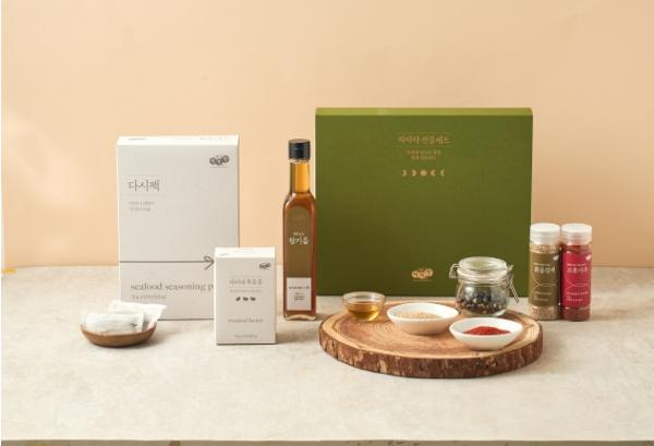 ‘착착착 사랑담은 선물세트’는 국내산 육수팩과 고춧가루, 볶음참깨, 볶은콩 등 활용도 높은 한식 조미 재료로 구성됐다. 기름류는 외국산 참기름과 국내산 들기름·참기름 중에서 고를 수 있어 소비자 선택 폭을 넓혔다. 선물세트에 포함된 모든 제품은 경기도 소재 노인일자리전담기관과 여성기업, 청년기업, 중증장애인기업 등에서 생산됐다.