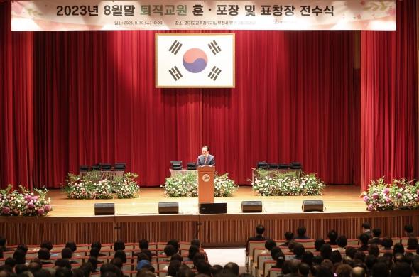 전수식에는 임 교육감과 이경희 제1부교육감, 한정숙 제2부교육감을 비롯, 도교육청 관계자와 퇴직 교원의 가족이 다수 참석해 학생 교육을 위해 헌신해 온 교원의 영예로운 마지막 자리를 함께 축하했다.