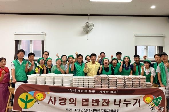 [한국뉴스타임=편집국] 남양주시 조안면 새마을지도자, 새마을부녀회는 지난 29일 회원 20여 명 및 각 사회단체장이 참여한 가운데 조안면 송촌1리 마을회관에서 ‘사랑의 밑반찬 나누기’ 행사를 진행했다.